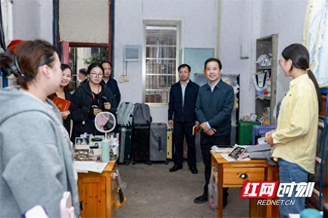 校领导们指导学生学业规划、现场推动解决宿舍条件问题。