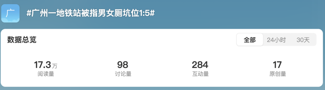 有媒体报道称,广州市中医药大学站智慧公厕的示意图显示,该站男厕有1蹲厕、1马桶及3小便池;女厕有8蹲厕、2马桶。微博话题#广州一地铁站被指男女厕坑位1:5#引发网友讨论。